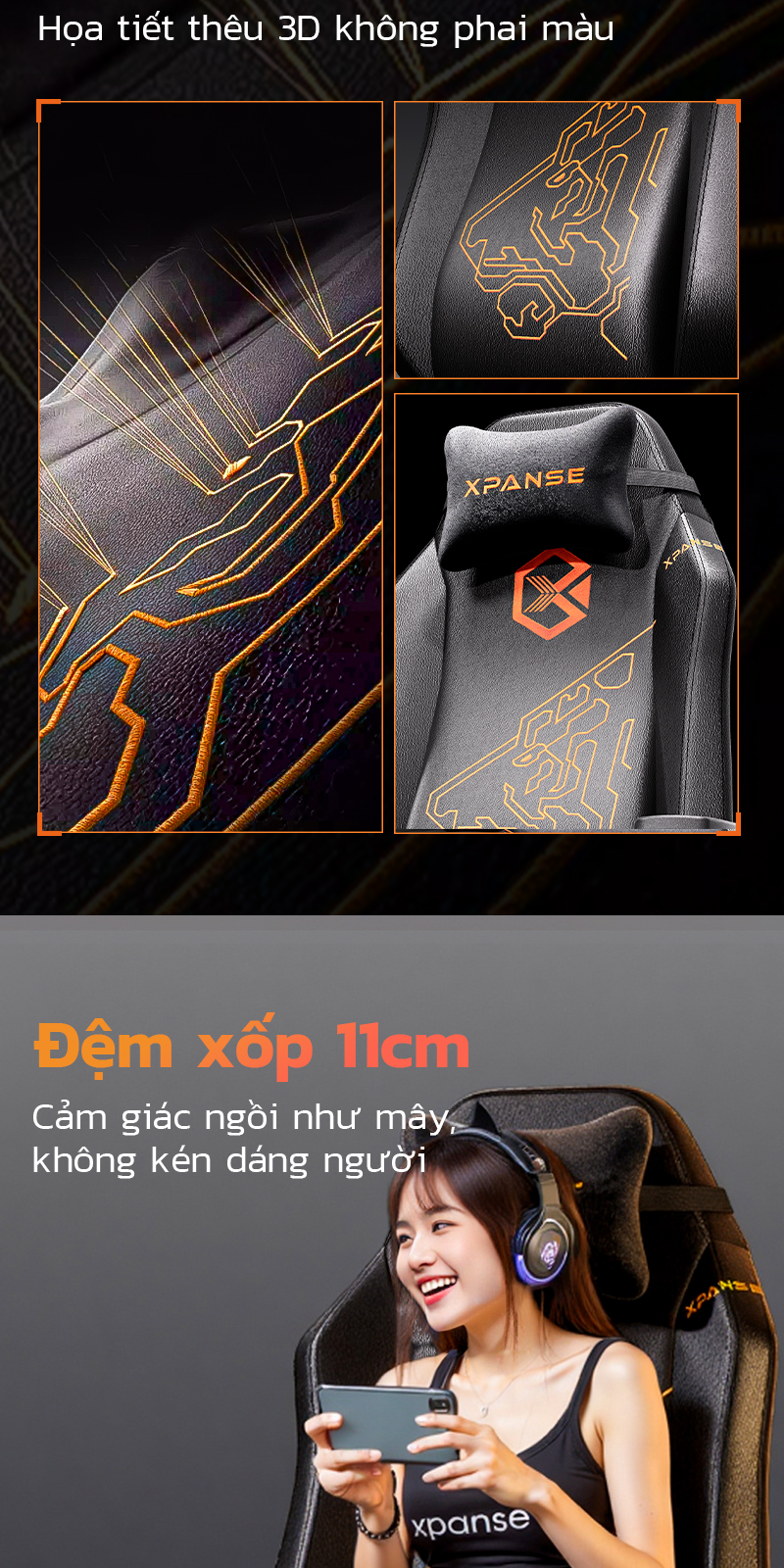 【ƯU ĐÃI MỚI】Ghế Gaming Thêu Hổ Cơ Xpanse X7 Ghế Công Thái Học & Xoay Văn Phòng | Da Nano Shield | 30 Ngày Thử