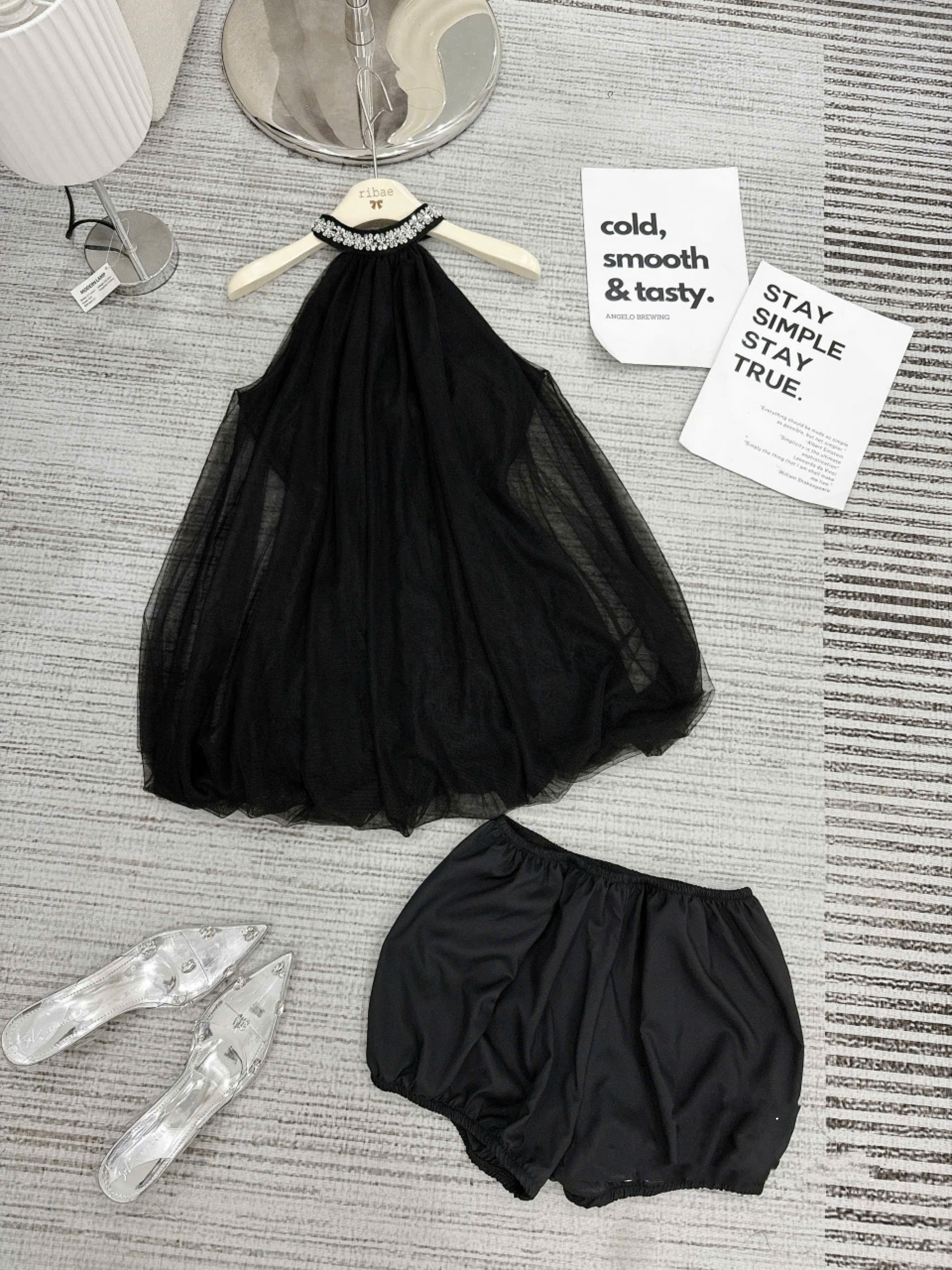 Váy yếm đính đá dáng xuông bồng lót ren sang chảnh sexy kèm quần bảo