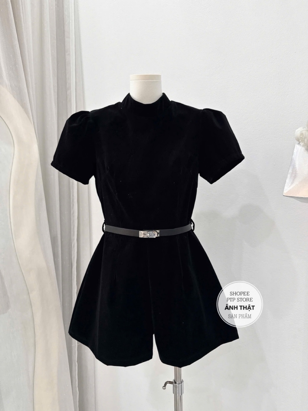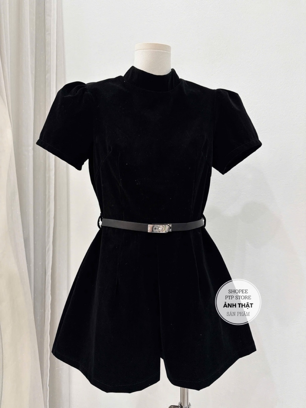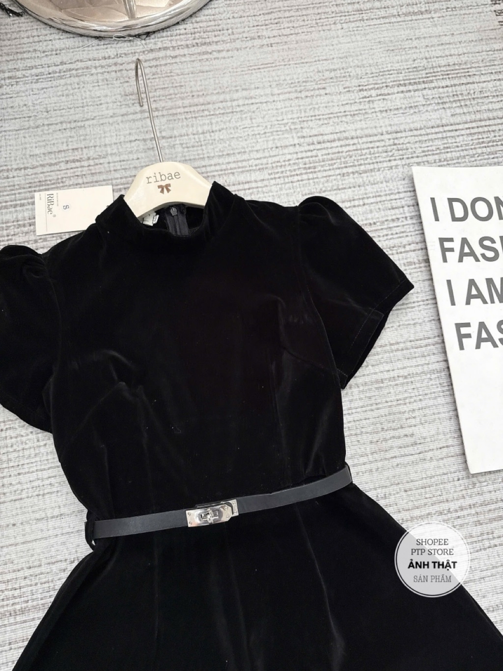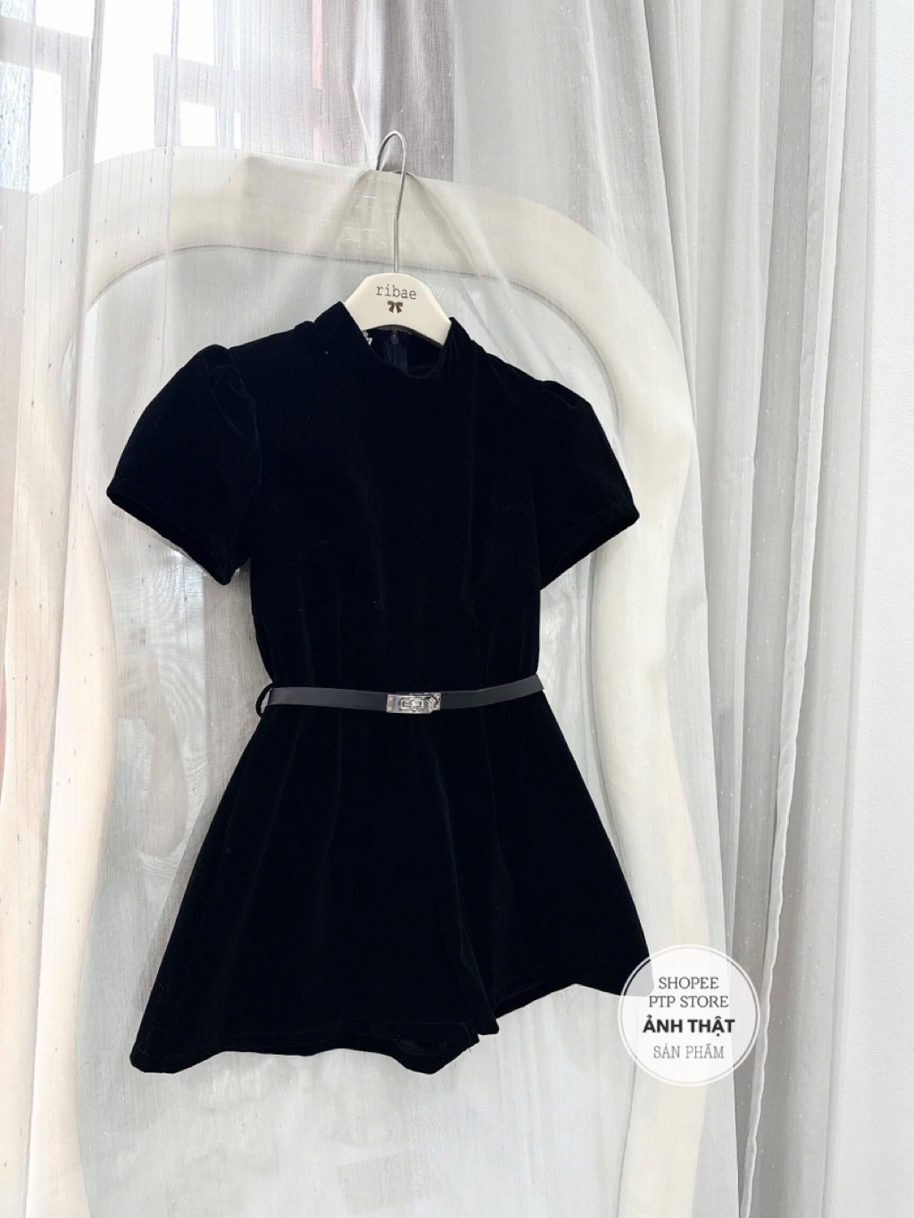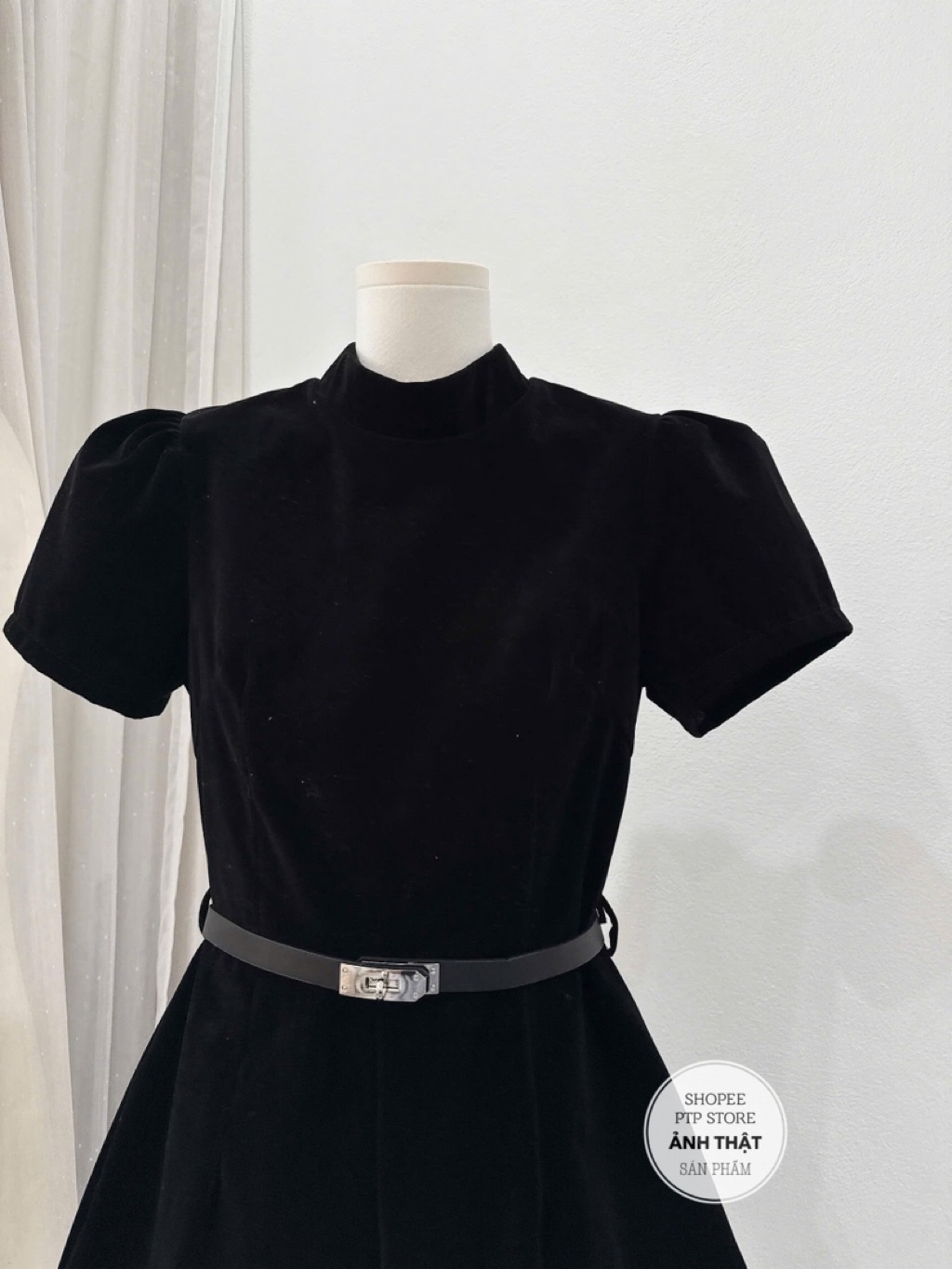 [V1.1056] Jum Nhung Tay Bồng Cổ Tàu Kèm Đai Da Siêu Xinh