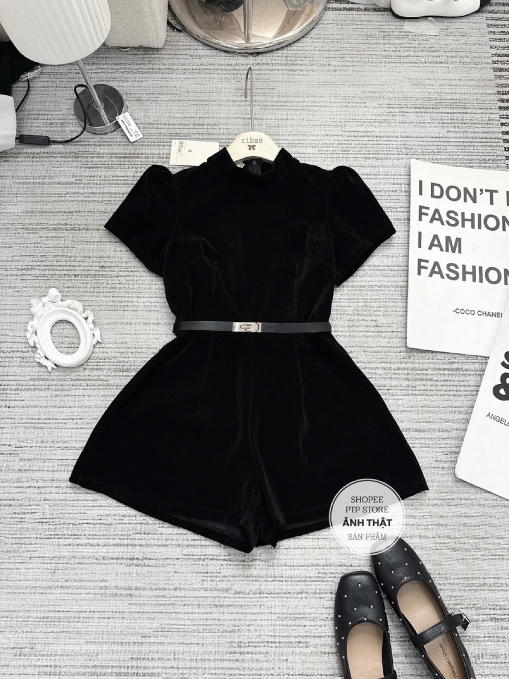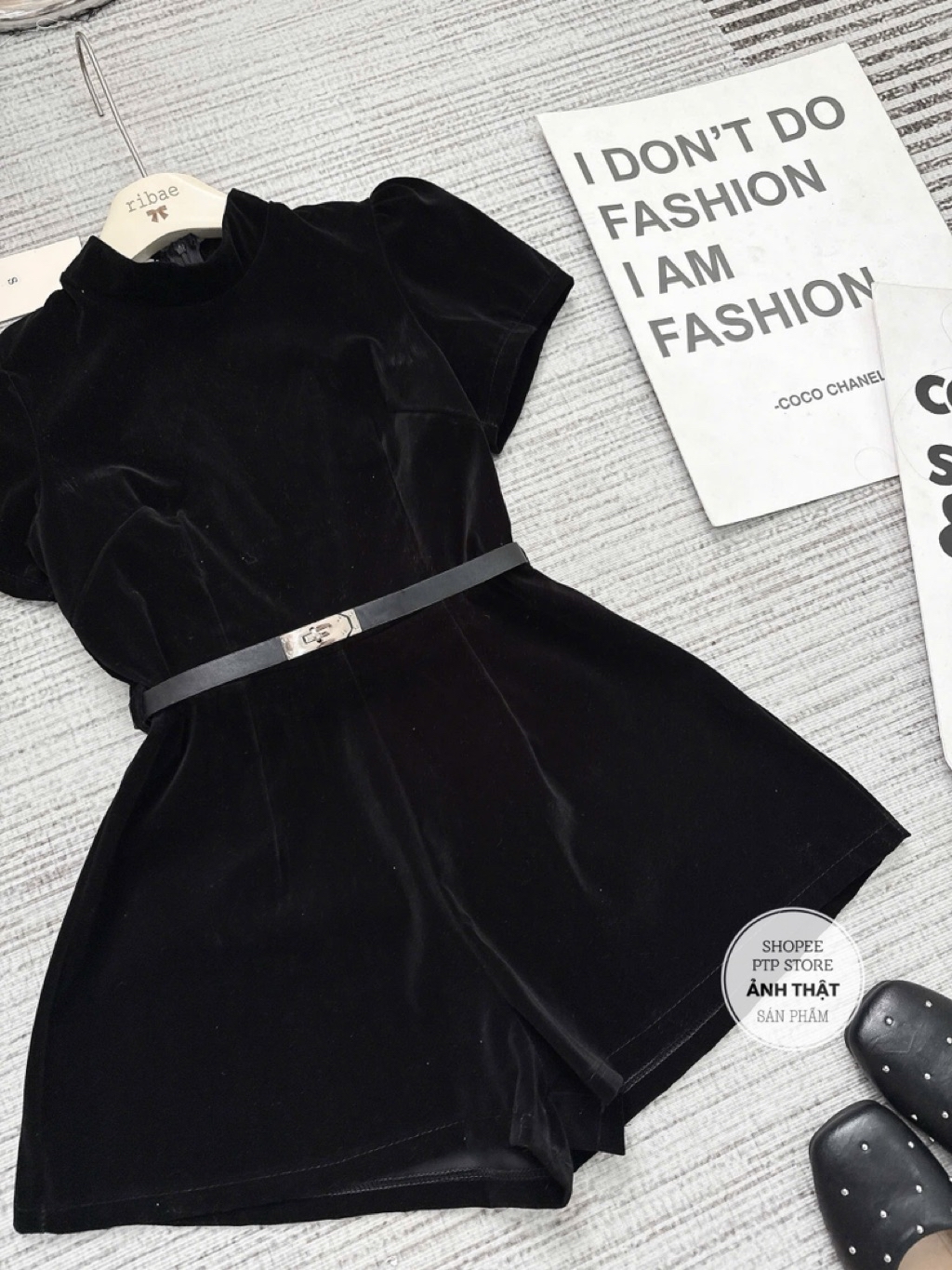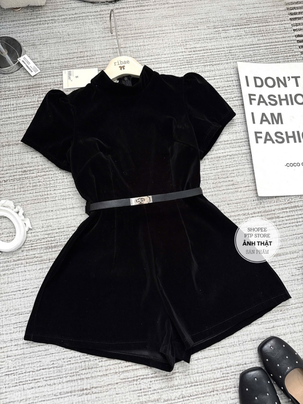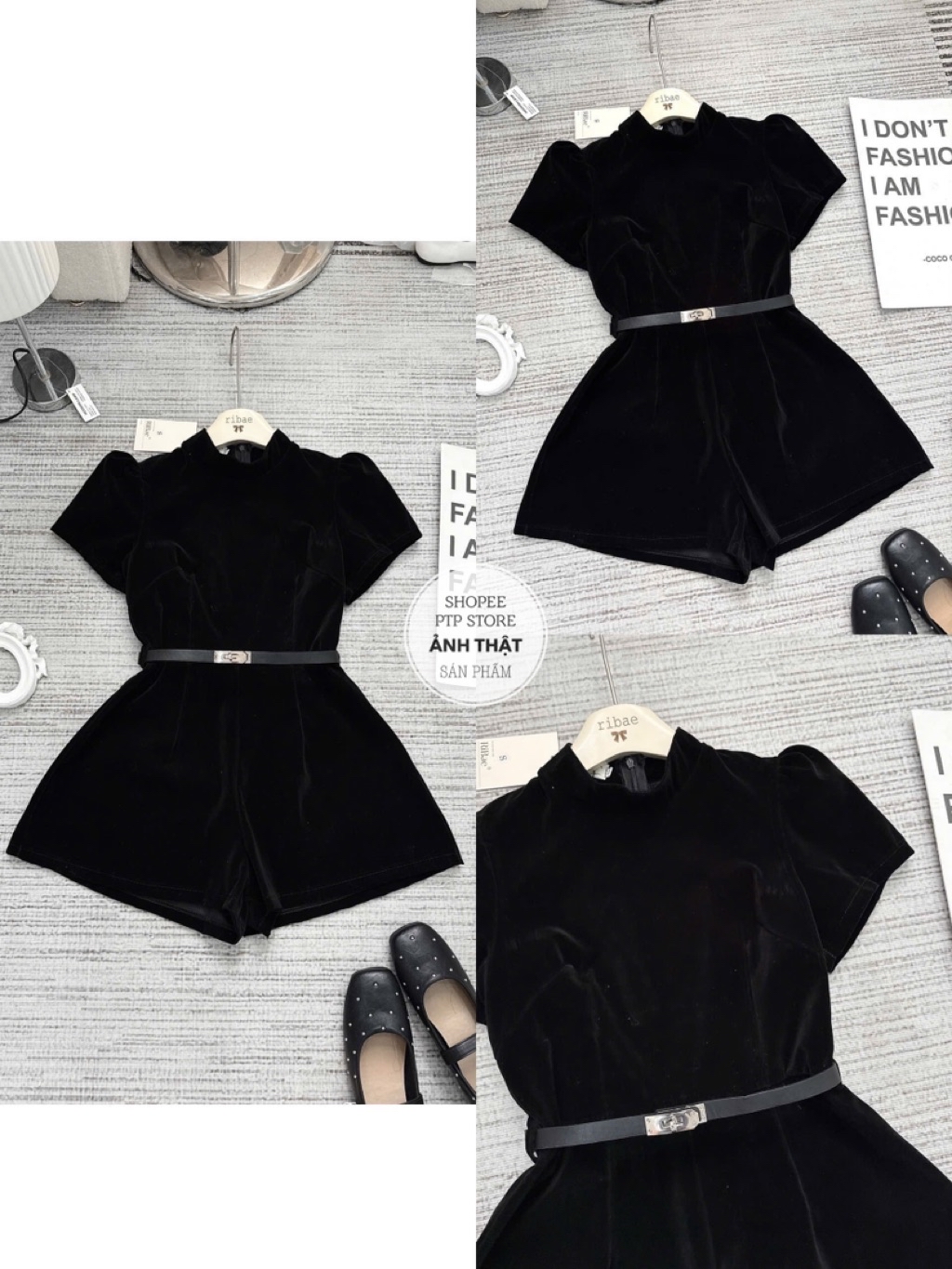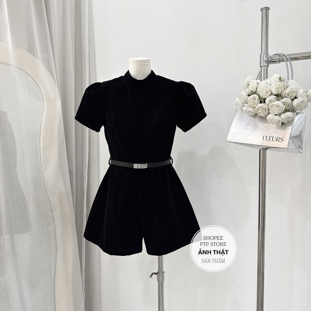 [V1.1056] Jum Nhung Tay Bồng Cổ Tàu Kèm Đai Da Siêu Xinh