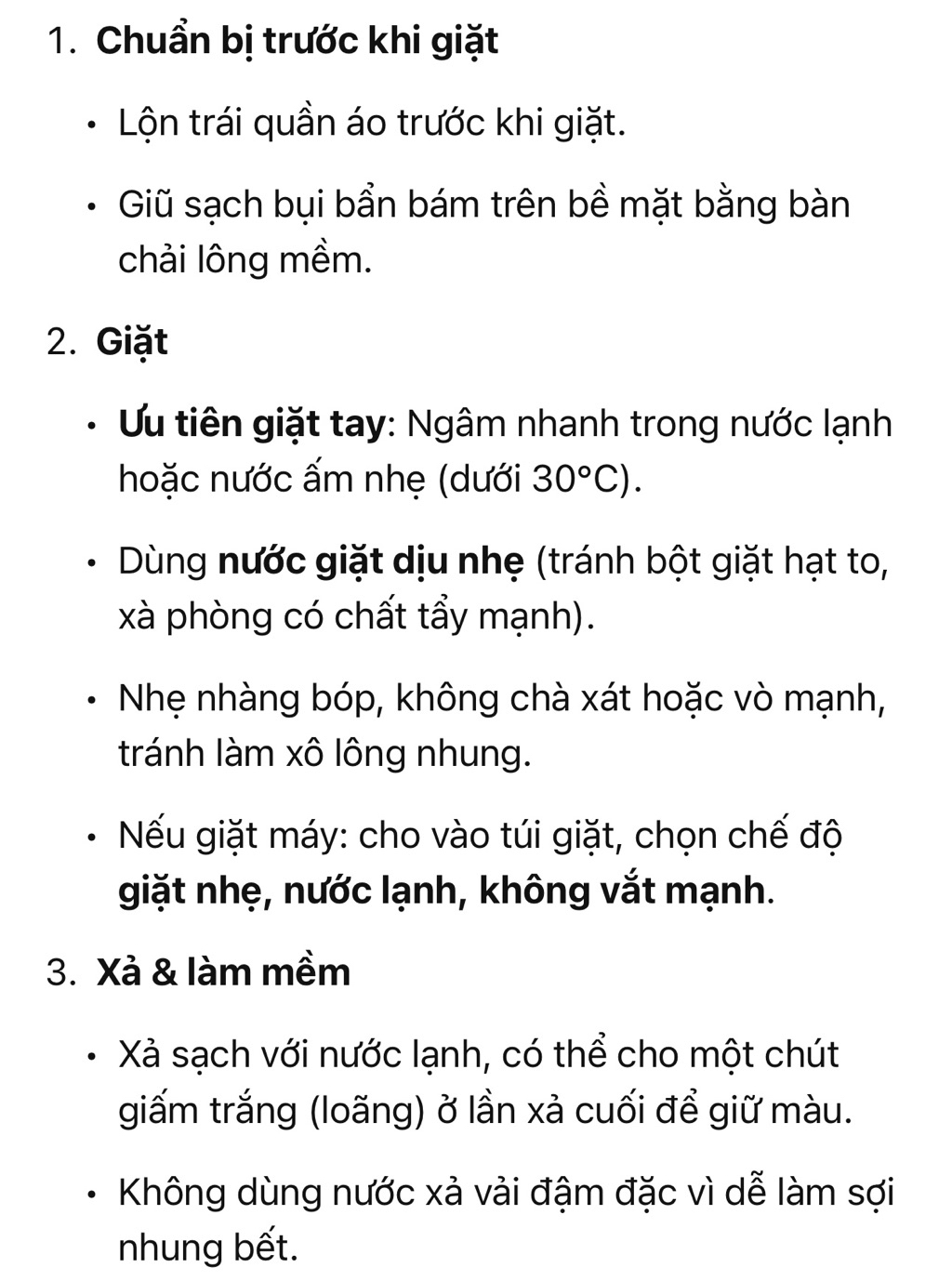 ❌ CHÚ Ý KHI GIẶT VẢI NHUNG