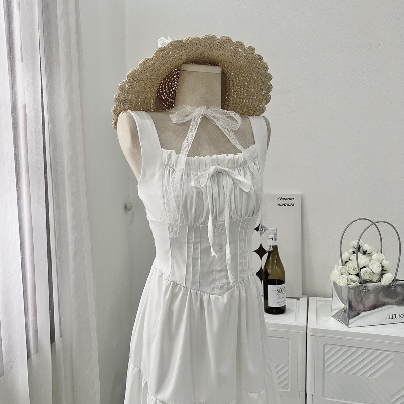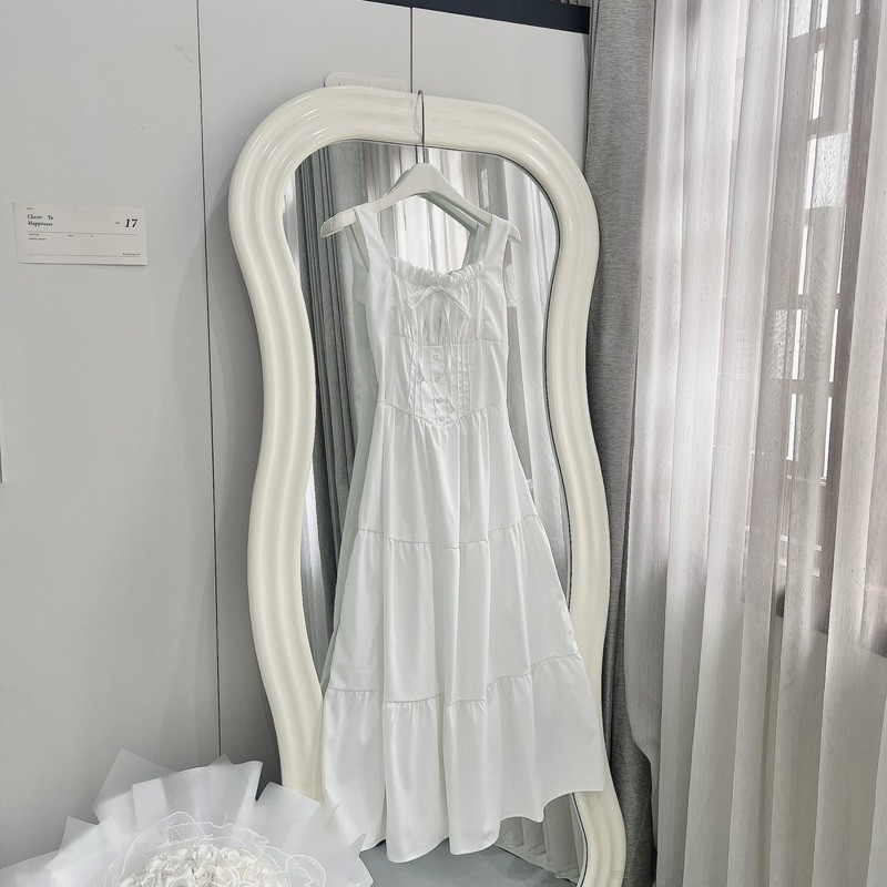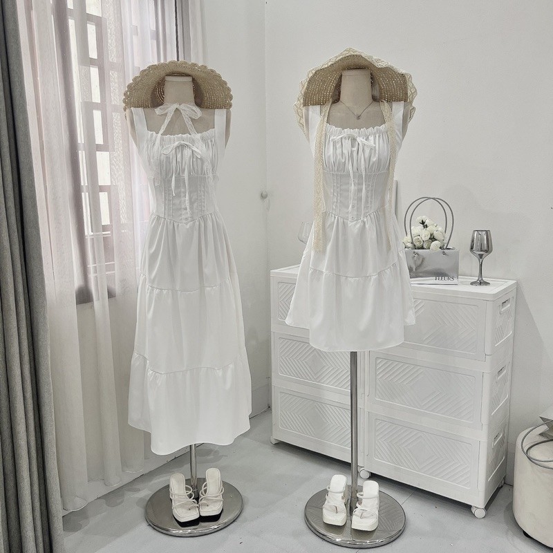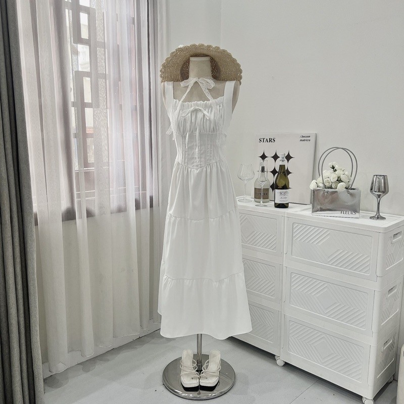 [V1.724] Váy Maxi Thô Trắng Nhúm Eo Ly Ngực Siêu Xinh (kèm ảnh thật)