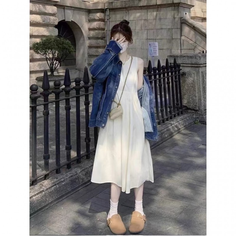 Váy 2 dây trễ vai nữ bigsize Đầm dài hai dây biển maxi đầm trắng váy trắng với dây đai không tay màu trắng phong cách pháp vào mùa hè