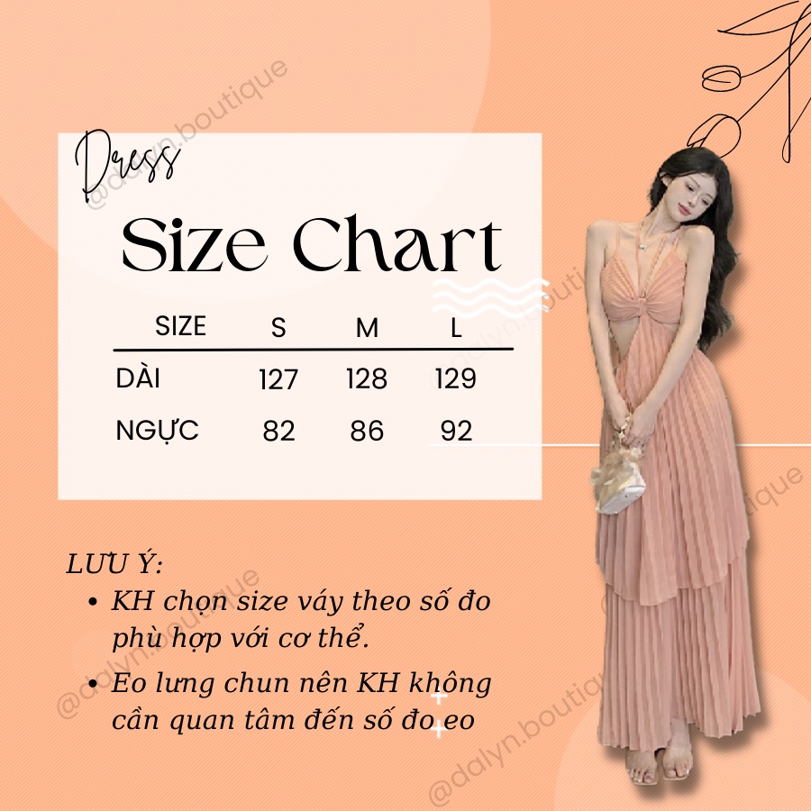 -Sản phẩm: Váy đầm maxi đi biển dáng dài xếp li 2 tầng hở lưng khoét eo