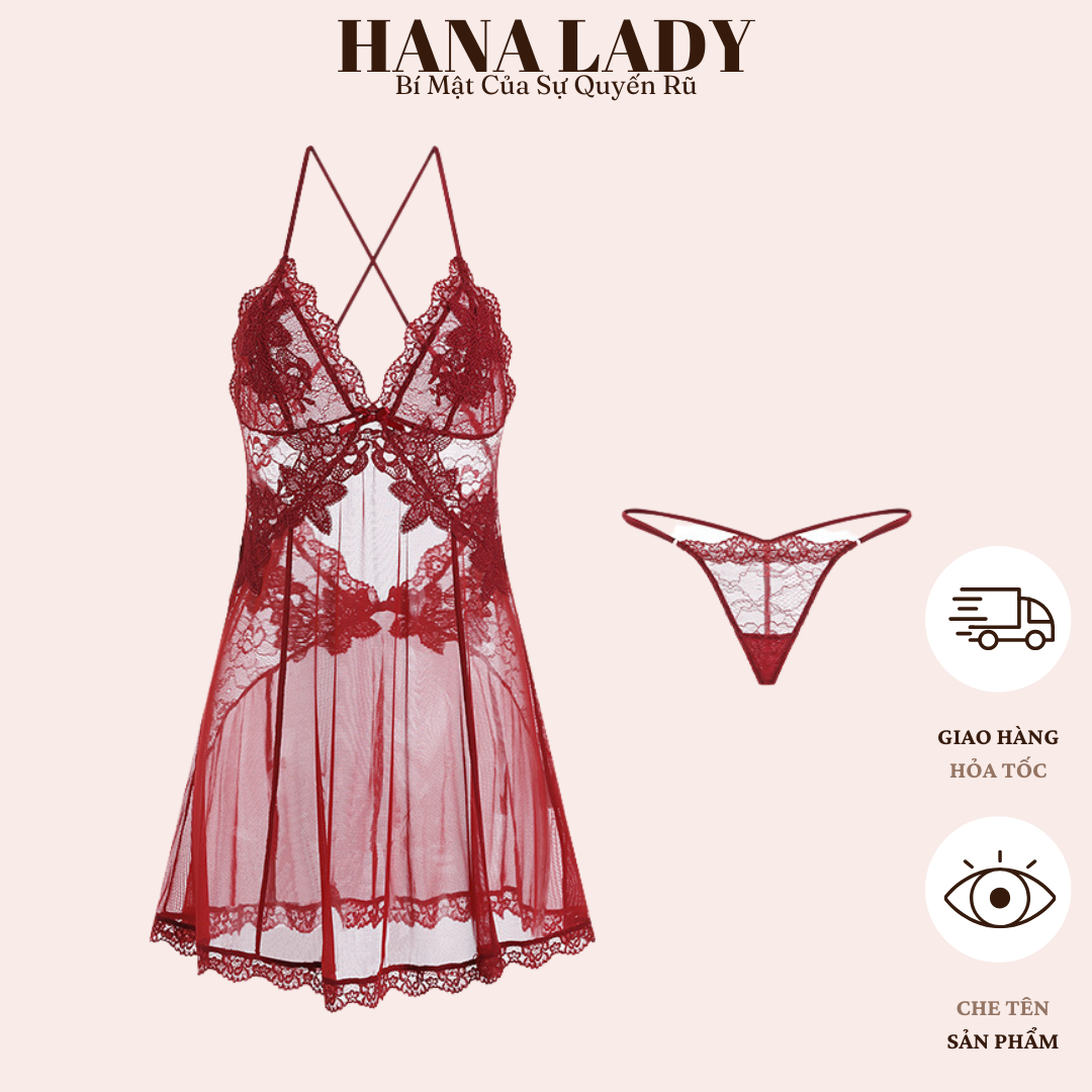 Váy Ngủ Nữ Sexy - Đầm Ngủ Voan Xuyên Thấu Quyến Rũ Phối Ren Kèm Quần Lọt Khe VN606