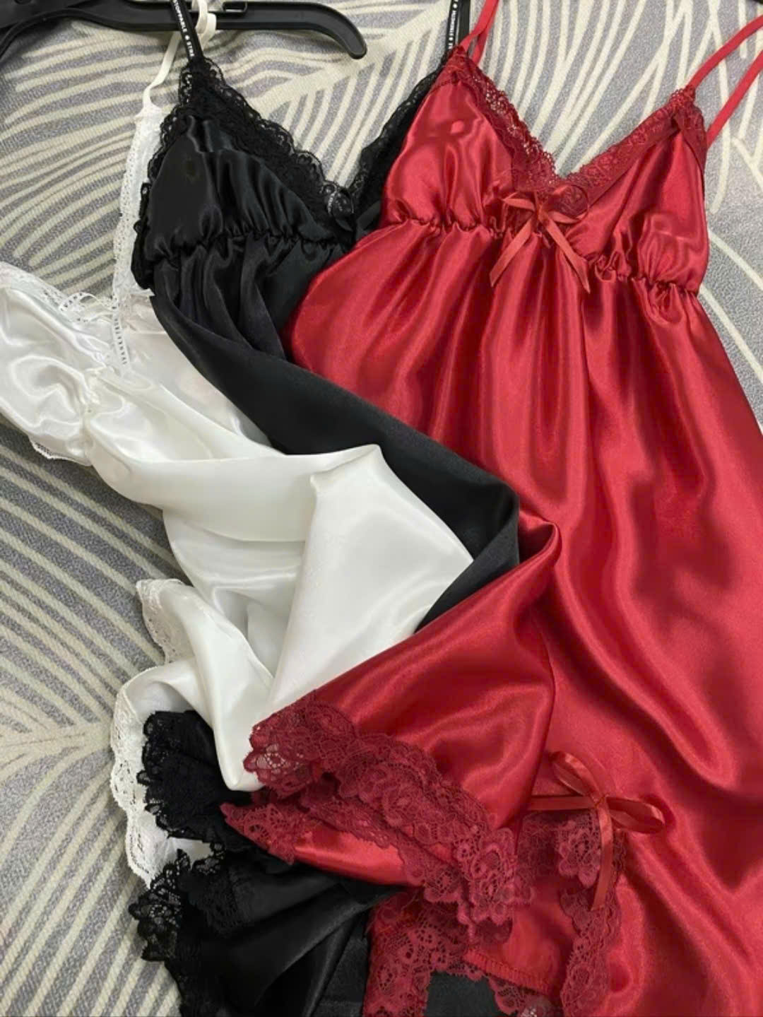 👉Váy ngủ sexy phối ren xẻ đồ ngủ phi lụa 2 dây mặc nhà gợi cảm CARY