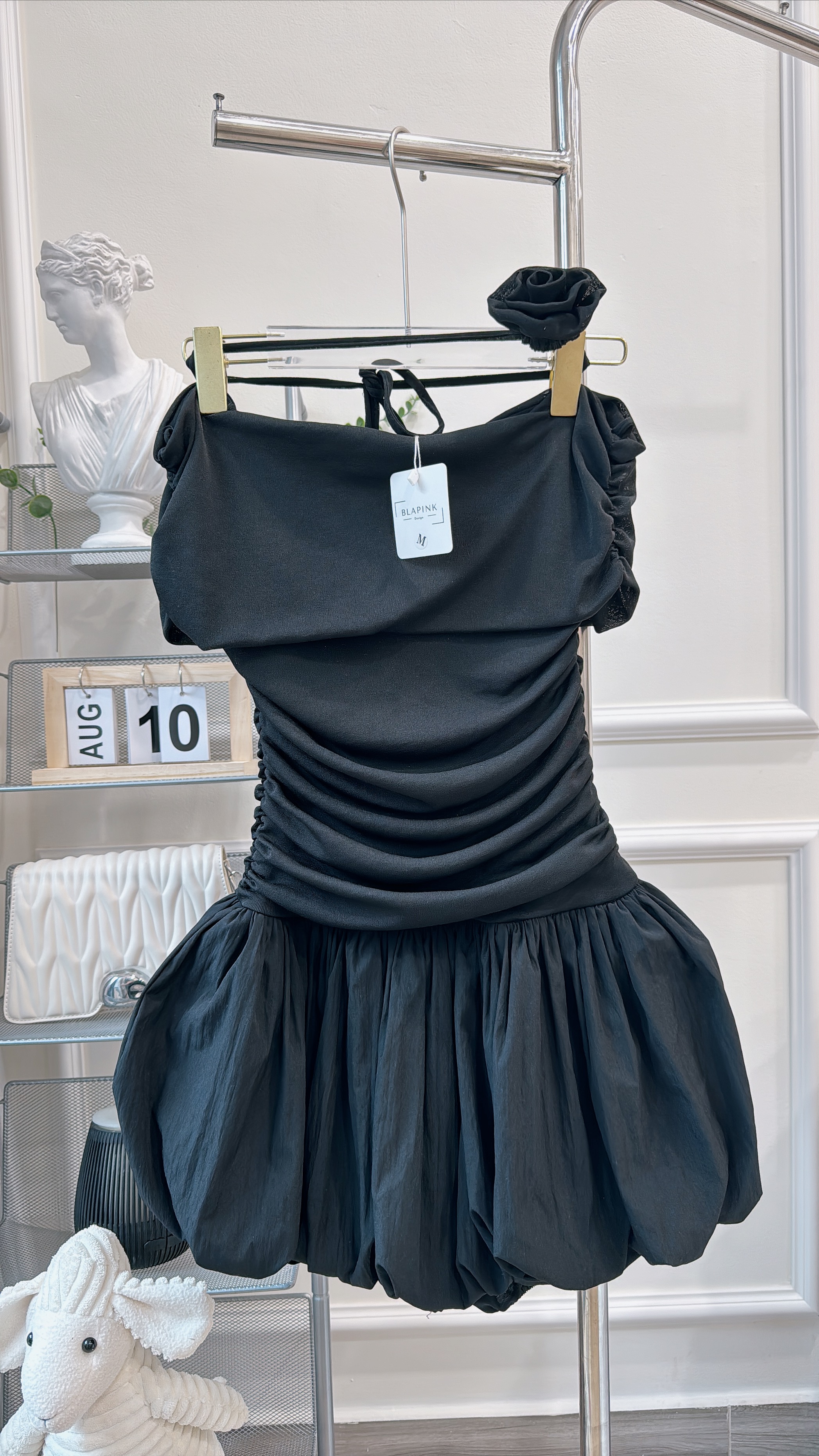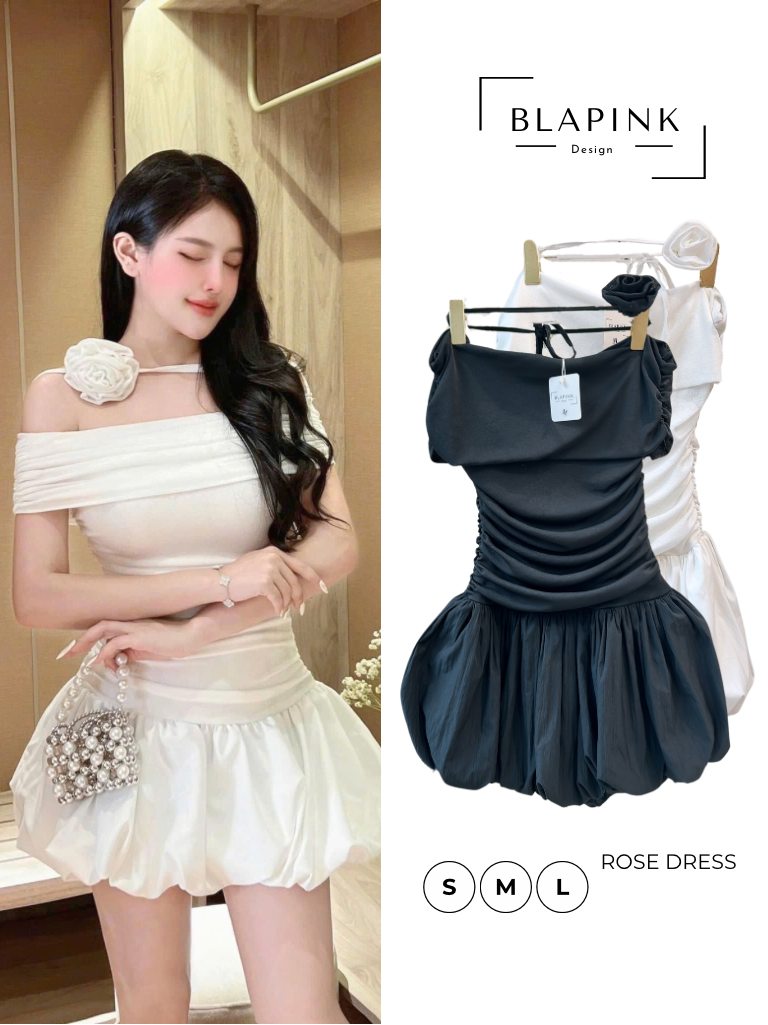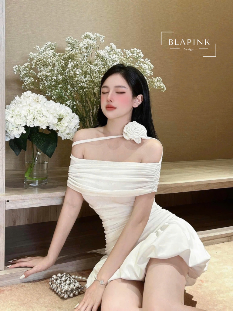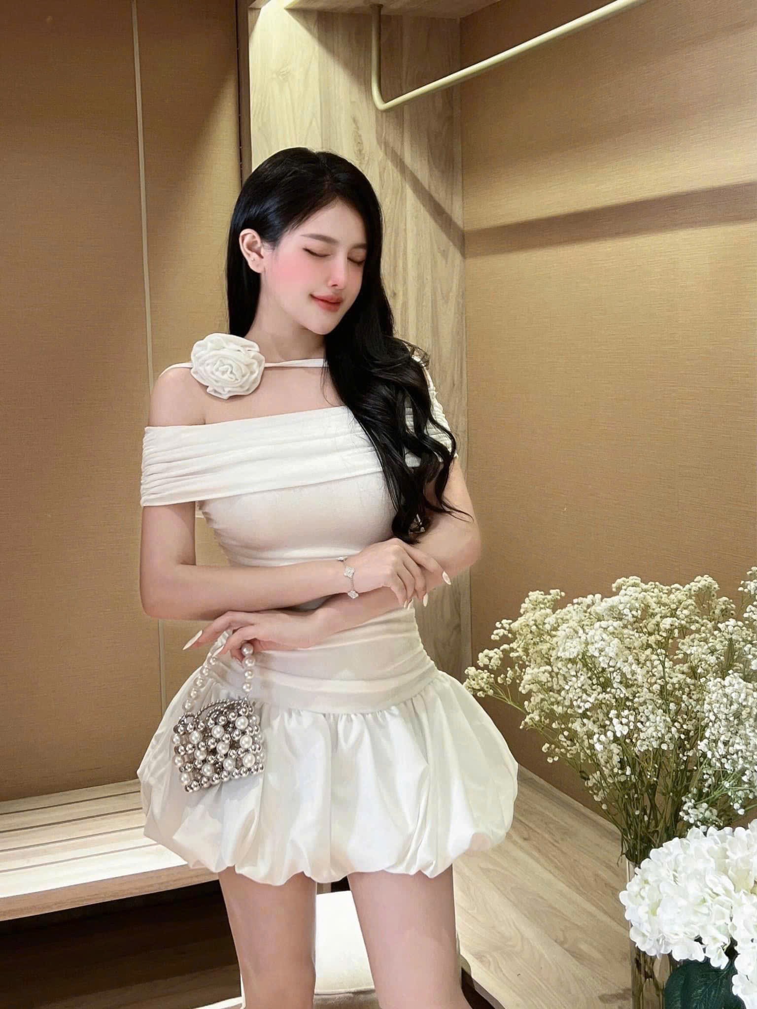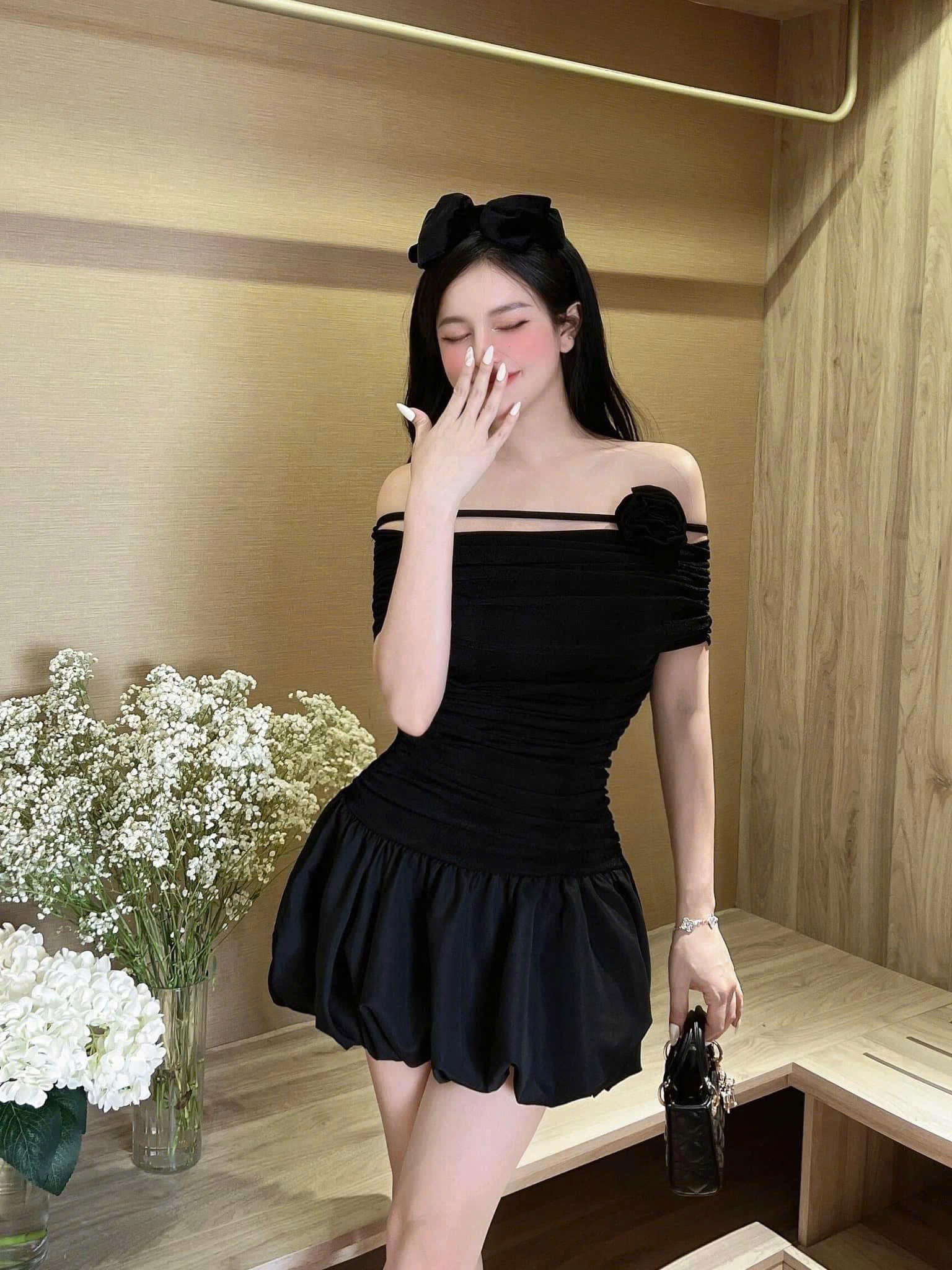 Váy Trễ Vai Sang Chảnh Đính Hoa Chất Thun Lạnh Thiết Kế Nhún Eo Tôn Dáng Có Lót Quần Bảo Hộ - ROSE DRESS