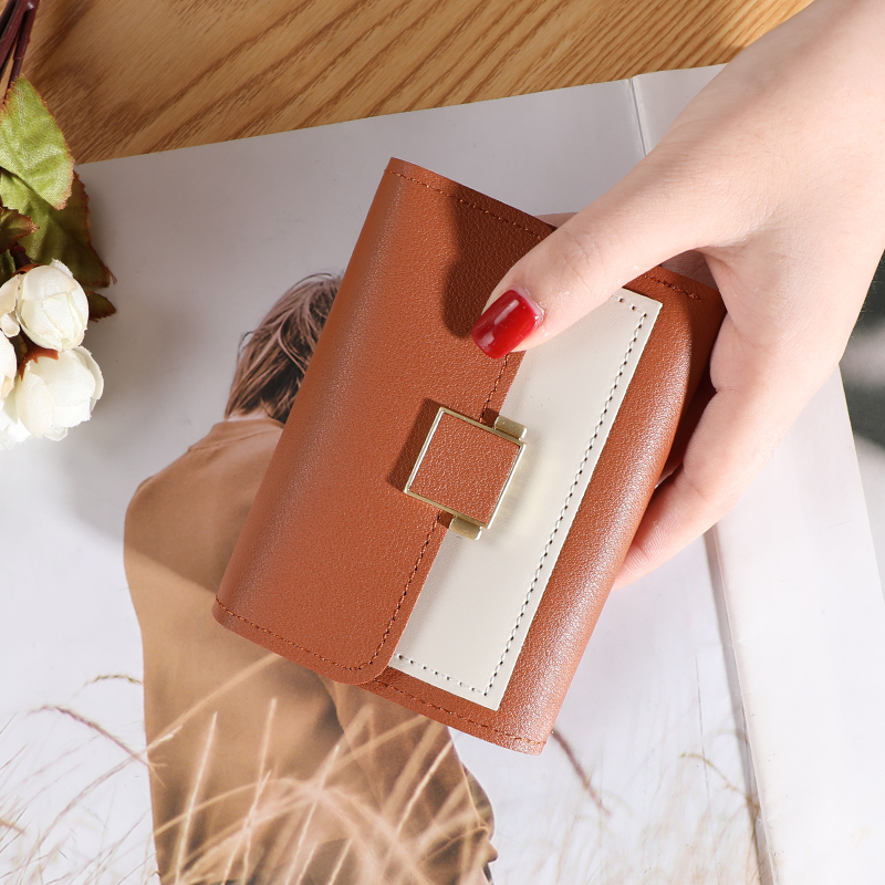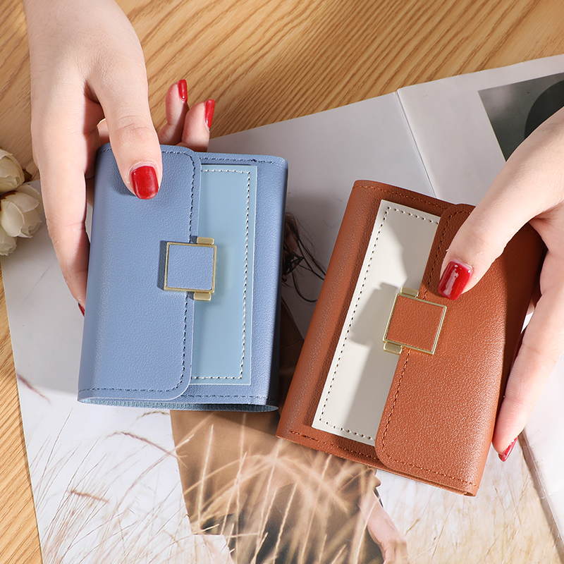 Ví nữ 2024 Màu tương phản mới Phiên bản Hàn Quốc của thủy triều Ví tiền xu dành cho sinh viên Ví nữ ngắn dễ thương