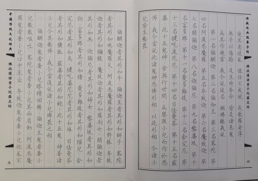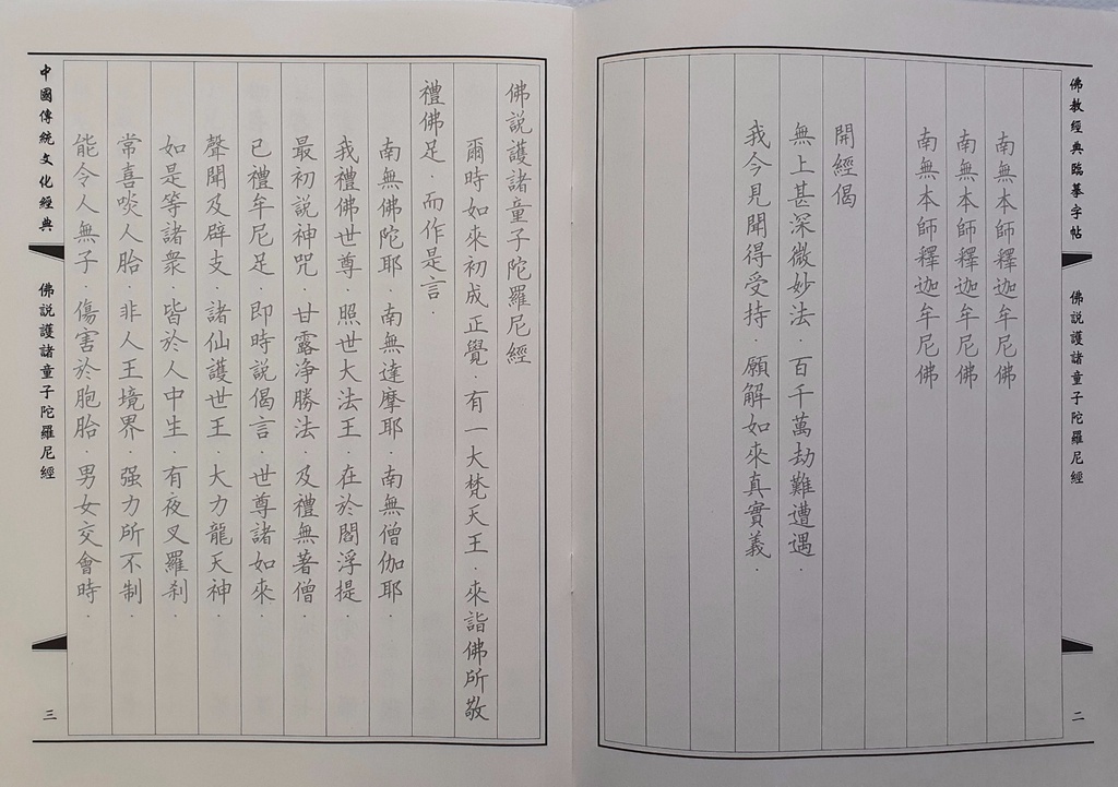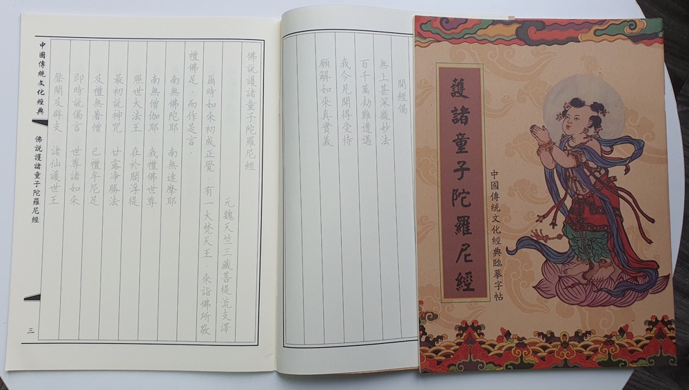 Vở chép Kinh Hộ Chư Đồng Tử Đà La Ni Kinh chữ Hán in mờ, học chữ Hán qua chép Kinh Phật - Kinh bảo hộ trẻ em