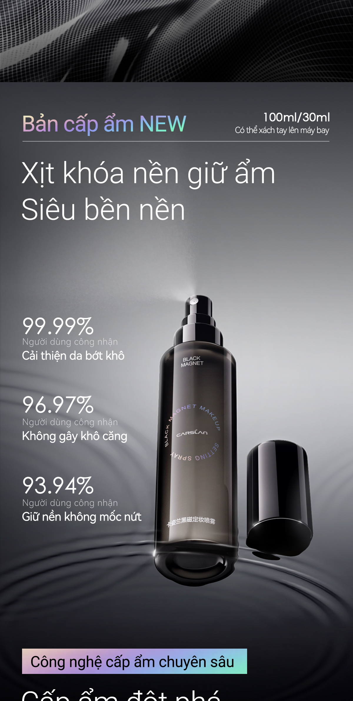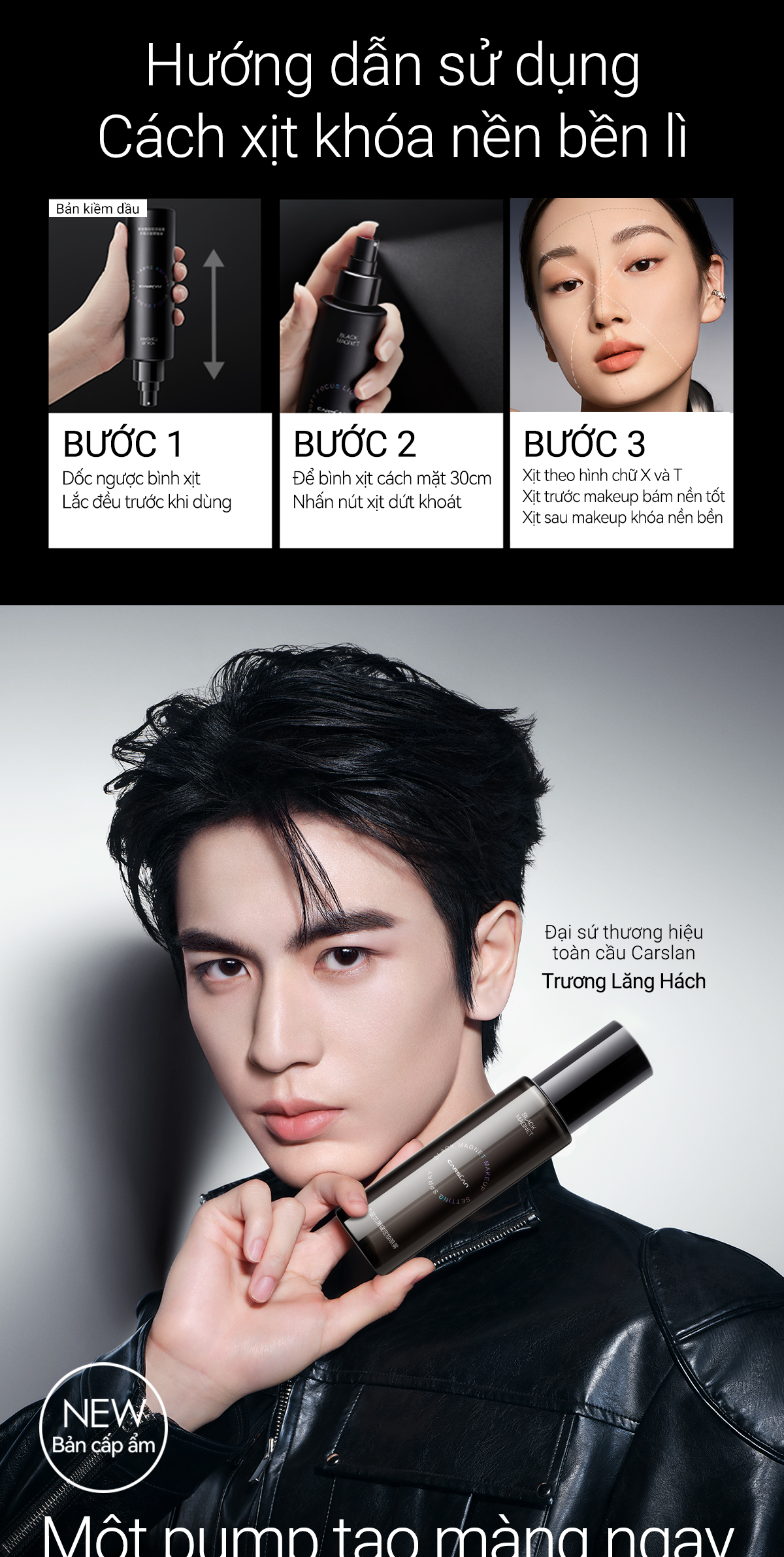 Xịt khoá nền trang điểm Carslan Nam Châm Đen Mềm Tập Trung Bột Lỏng Trang Điểm Xịt Kiểm Soát Dầu Lâu Dài Giữ Trang Điểm 24H 150ML
