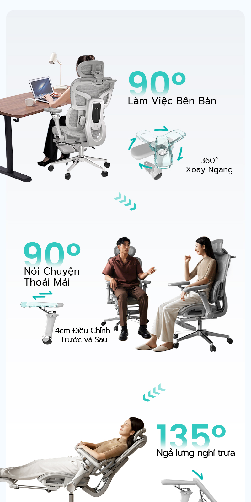 📌 Ghế điều chỉnh lưng linh hoạt, phù hợp cho người cao từ 155–190cm.
