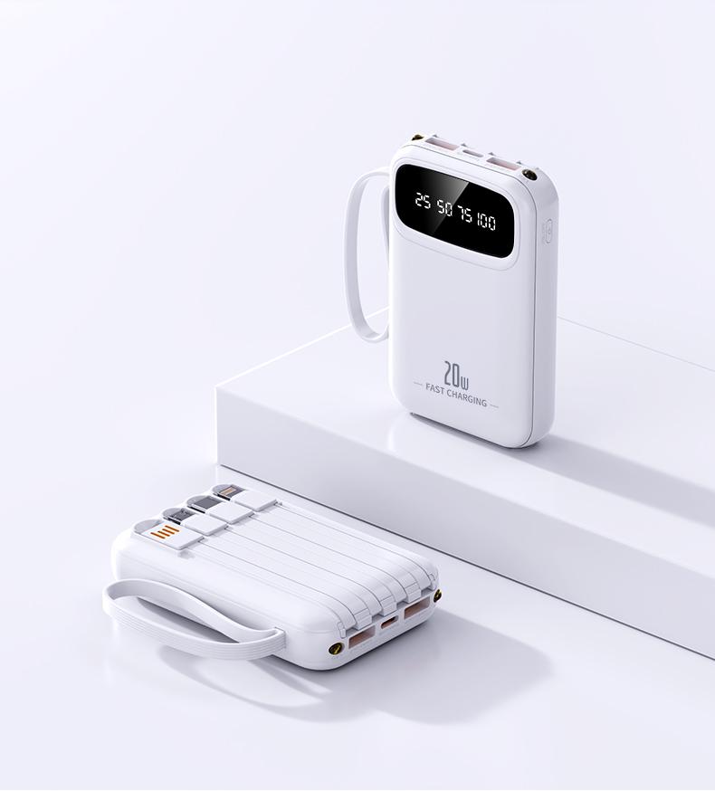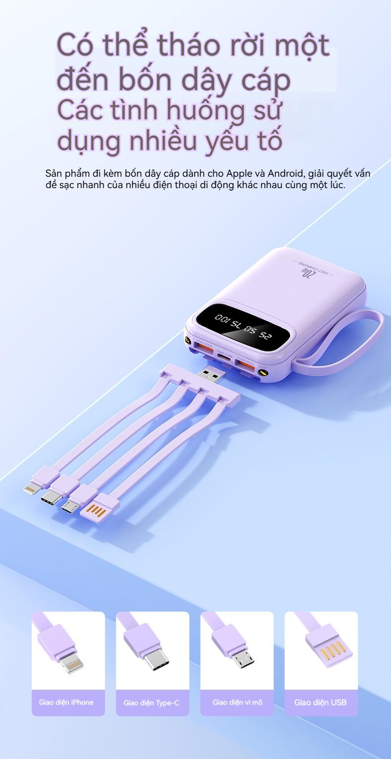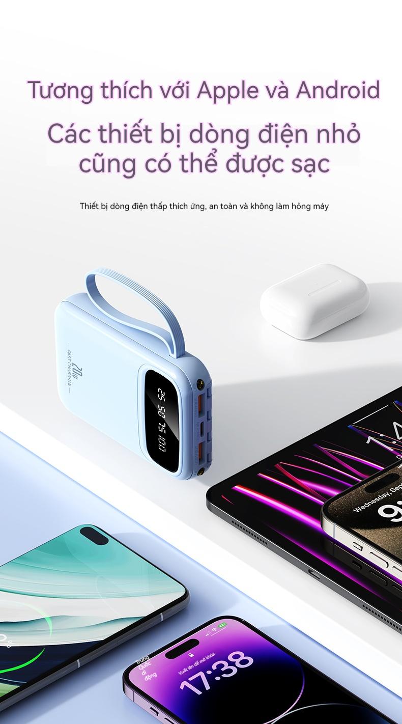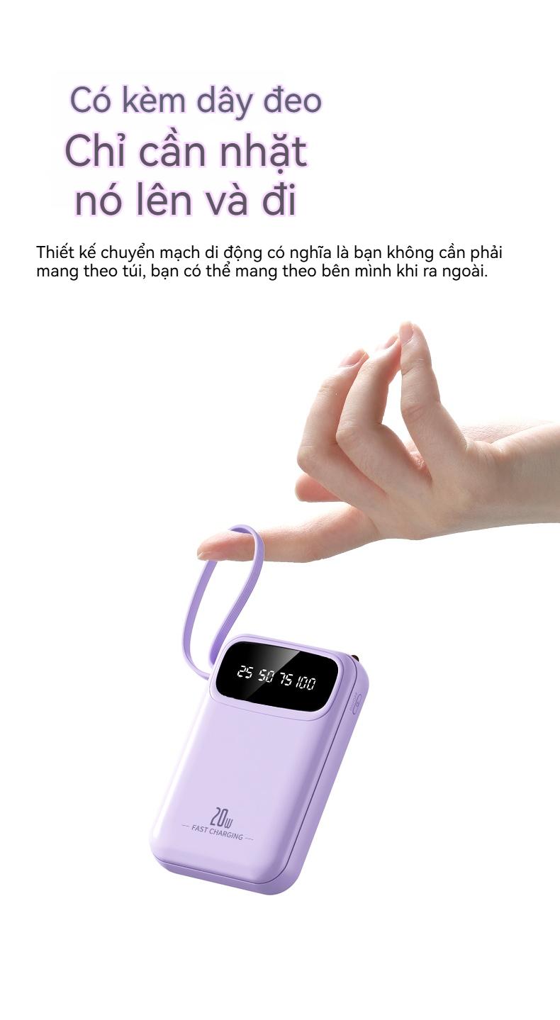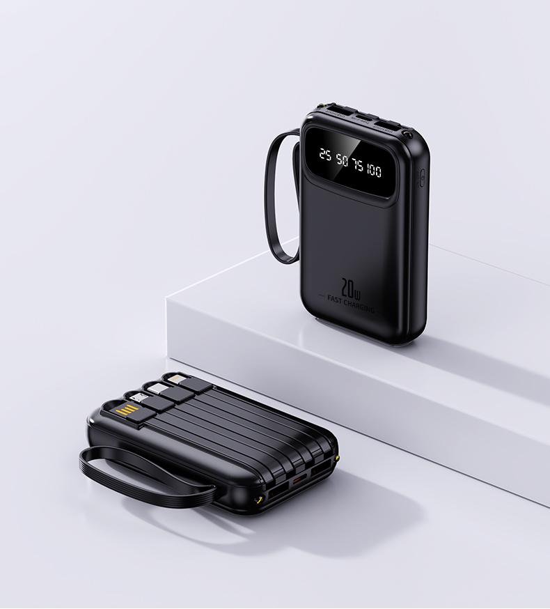 ✨ Tiêu đề: YUWEI Pin Dự Phòng Mini Sạc Nhanh và PD 20W Đi Kèm 4 Dây Sạc, Dung Lượng 20000mAh
