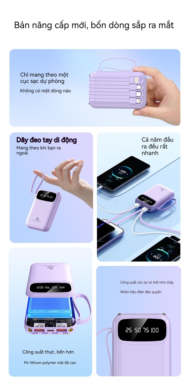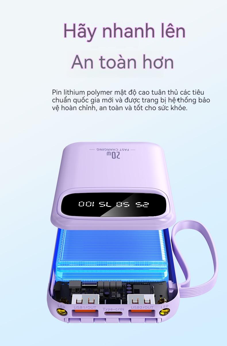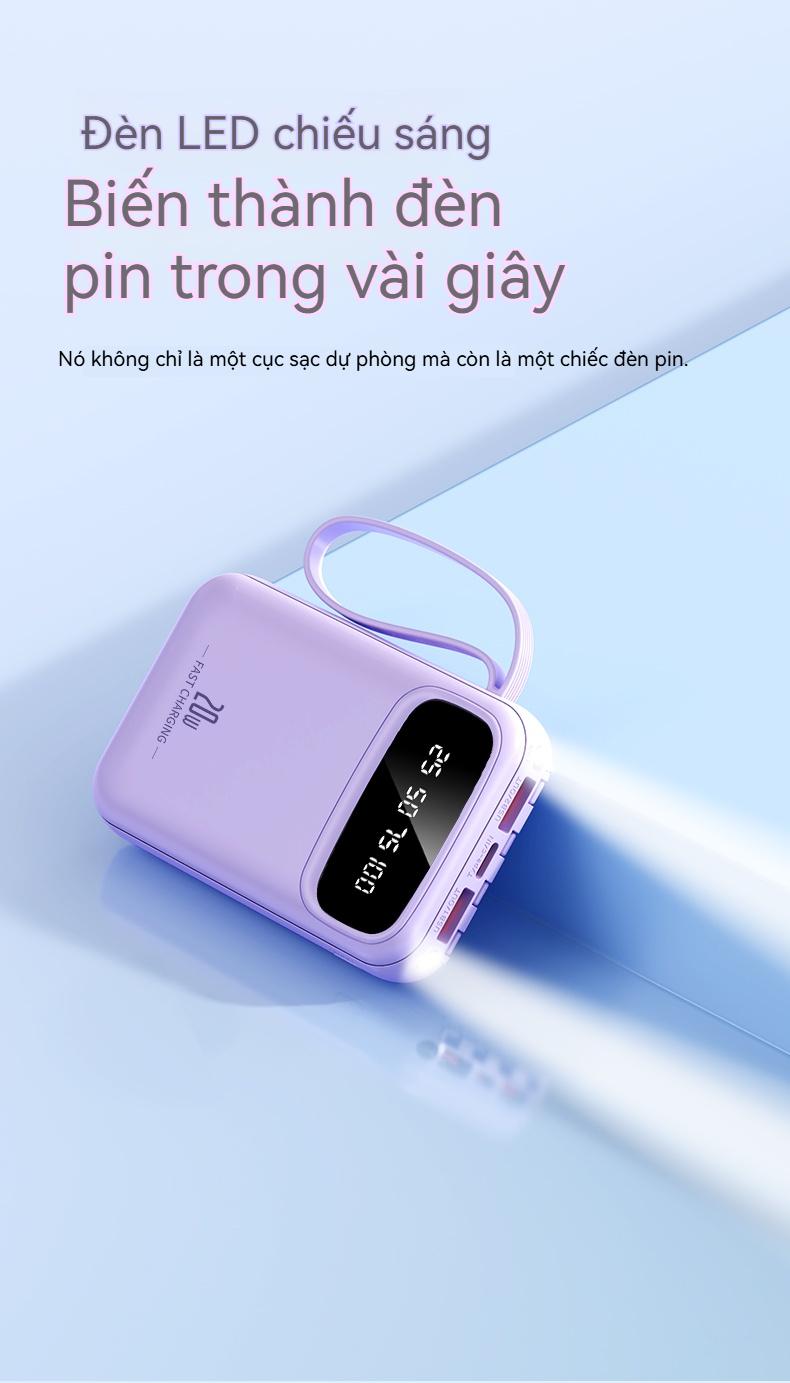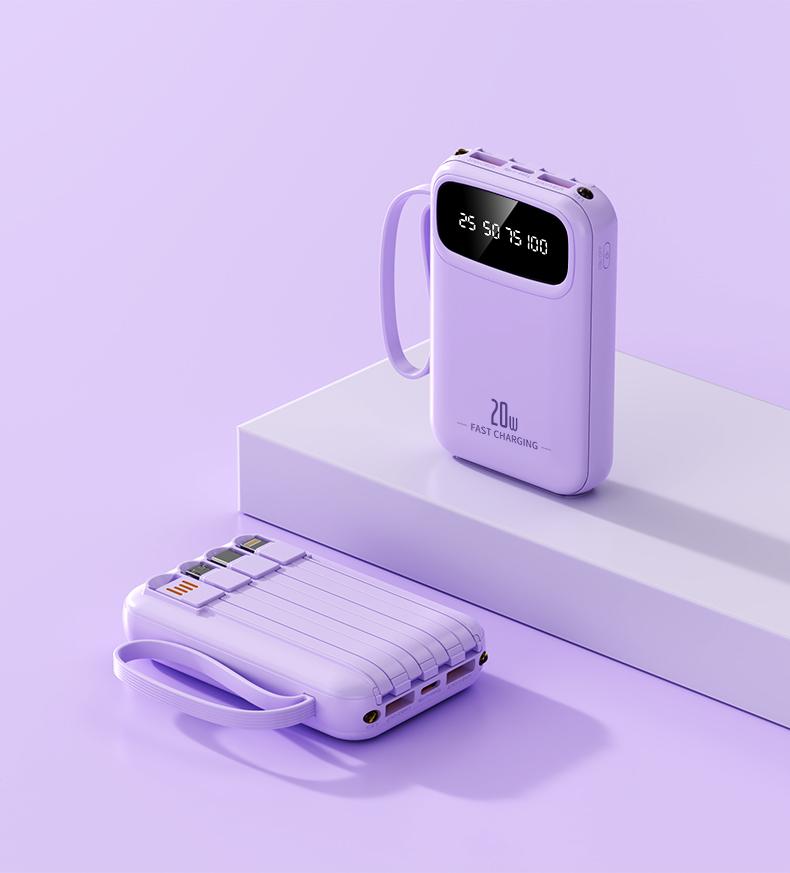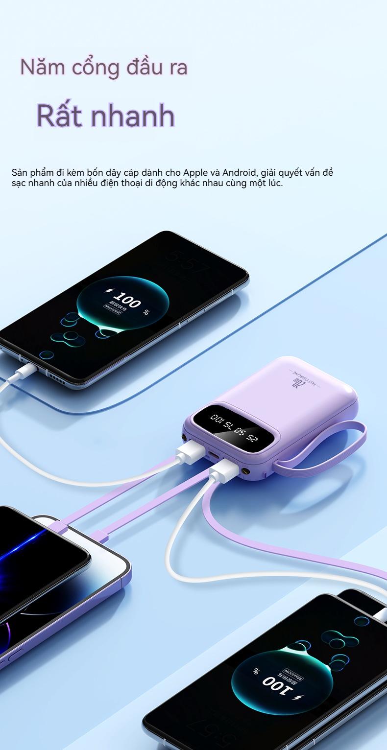 ✨ Tiêu đề: YUWEI Pin Dự Phòng Mini Sạc Nhanh và PD 20W Đi Kèm 4 Dây Sạc, Dung Lượng 20000mAh